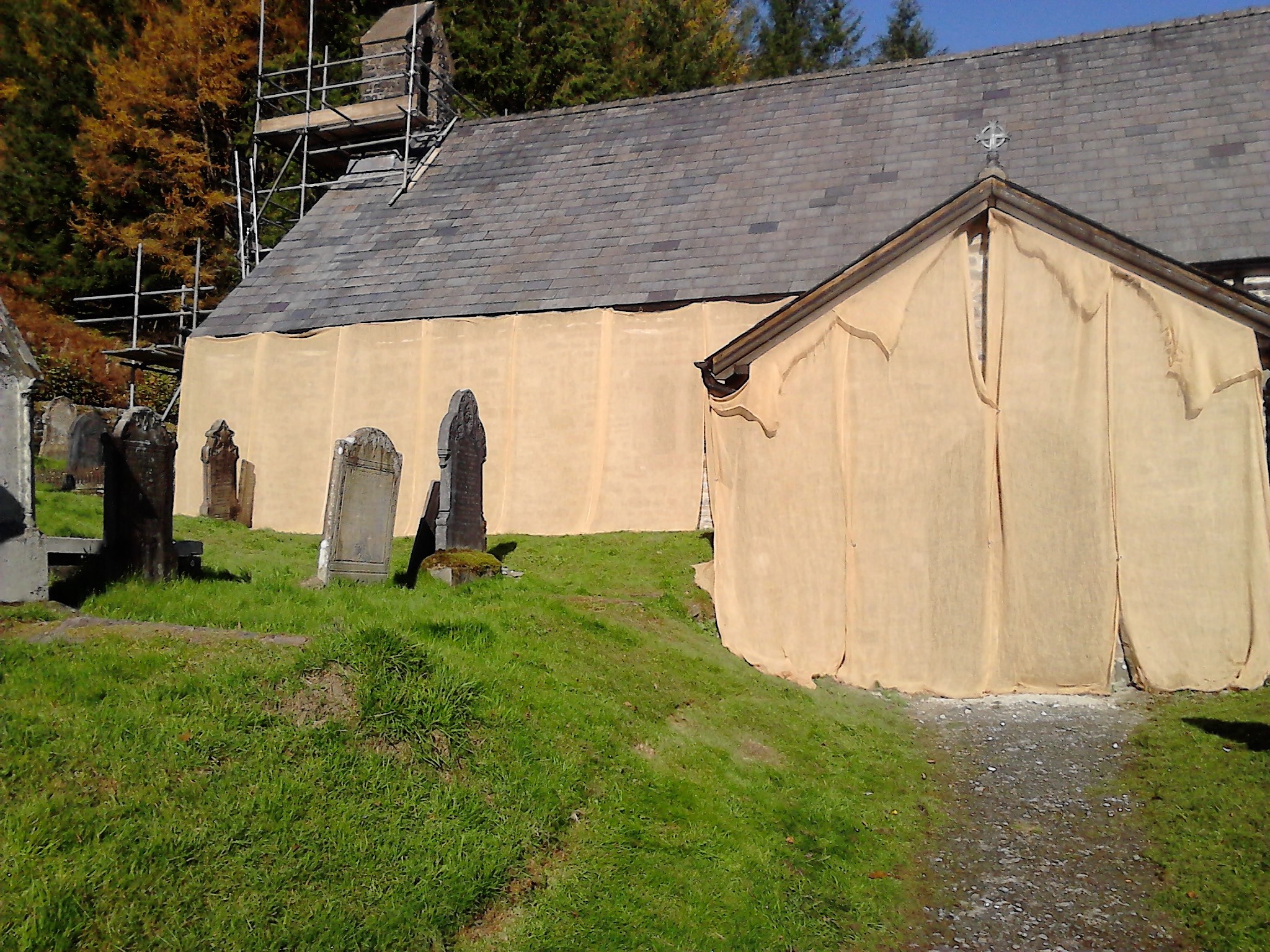 A memorial plaque was removed from the South wall so that contractor could access the old lime mortar beneath. The memorial plaque date 1765 revealed white lime based wash on the wall, indicating that the church was painted before 1765. Given the churches elevated position the gleaming white edifice would have been a magnificent sight.